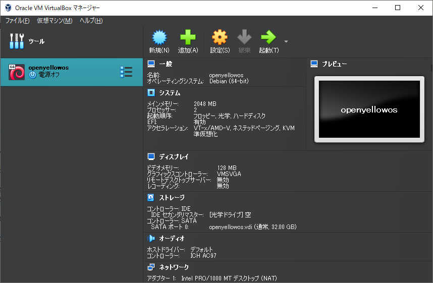 導入できる実機がないのでVirtualBoxで試す。設定はこんな感じ。